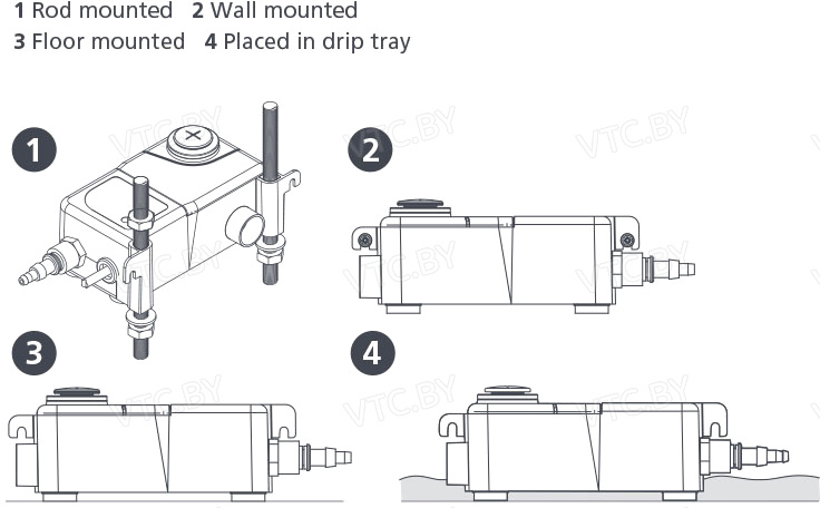 Mini Tank можно монтировать на стене, на полу, в поддоне или подвешивать на стержне M8 / M10. Благодаря поршневой технологии это компактный, мощный и многофункциональный насос для резервуаров. Максимальный поток 35 л/ч