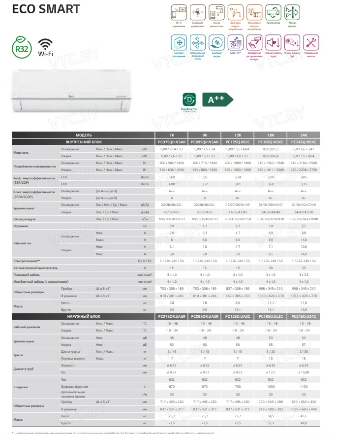 - Экологичный хладагент R32 — безопасен для окружающей среды.