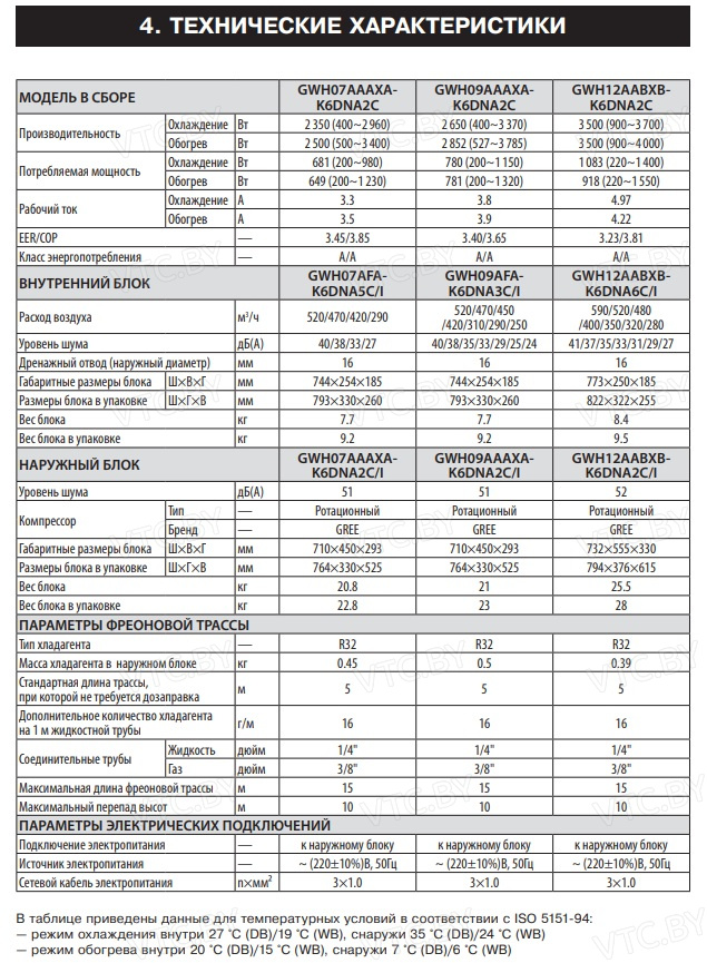 Бренд Gree Модель Bora R32 Inverter 2022 GWH12AABXB-K6DNA2C Завод изготовитель Gree Electric Appliances Inc. of Zhuhai Тип кондиционера Сплит-система Тип внутреннего блока Настенный Производительность по воздуху, м³/ч 590 Инверторная технология Да Обслуживаемая площадь м2 35 Цвет внутреннего блока Белый (глянцевый) Хладагент R-32 Wi-Fi Есть Режим работы при обогреве -15 Мощность охлаждения, кВт 3.5 Мощность обогрева,кВт 3.5 Особенности Таймер, Фотокаталитический фильтр , Электростатический фильтр , Авторестарт после пропадания питания, iFeel (датчик температуры в пульте д/у), Антибактериальная защита, Бесконтактное включение, Воздушный фильтр, Регулировка направления, Регулировка скорости, Режим обогрева, Режим разморозки Гарантия(месяцев) 36 Шум внутреннего блока,дБ 27 Шум наружного блока,дБ 52 Ширина внутреннего блока,см 77.3 Высота внутреннего блока,см 25 Глубина внутреннего блока,см 18.5 Ширина наружного блока,см 73.2 Высота наружного блока,см 55.5 Глубина наружного блока,см 33 Потребляемая мощность, кВт (при обогреве) 0.918 Потребляемая мощность, кВт (при охлаждении) 1.083 Диаметр жидкостной магистрали 1/4 Диаметр газовой магистрали 3/8 Класс энергоэффективности при обогреве A Класс энергоэффективности при охлаждении A -