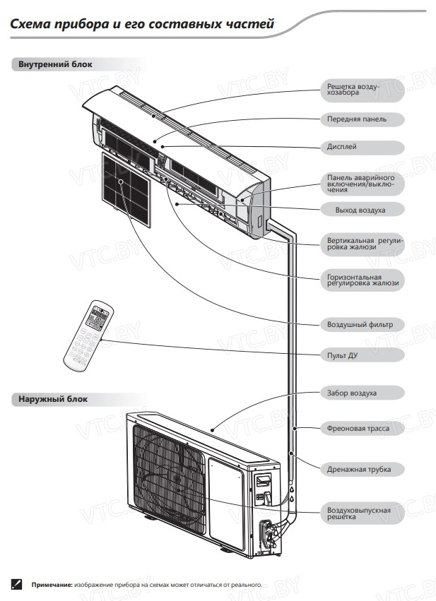 - Регулировка жалюзи - управление направлением воздушного потока