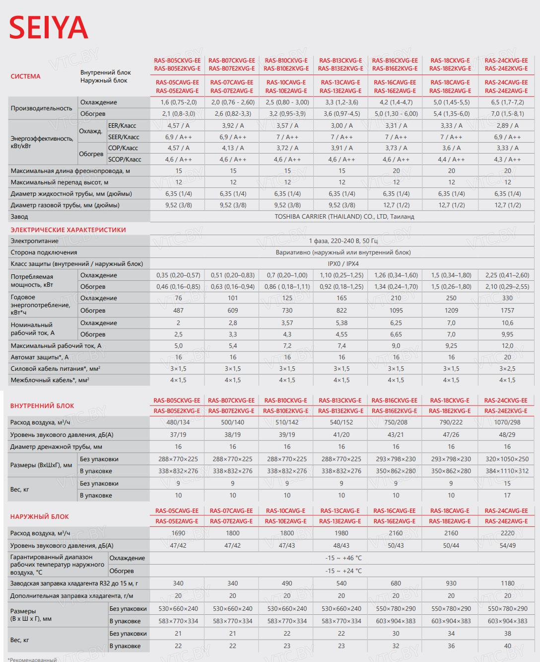 Кондиционер Toshiba Seiya RAS-B10CKVG-EE/RAS-10CAVG-EE