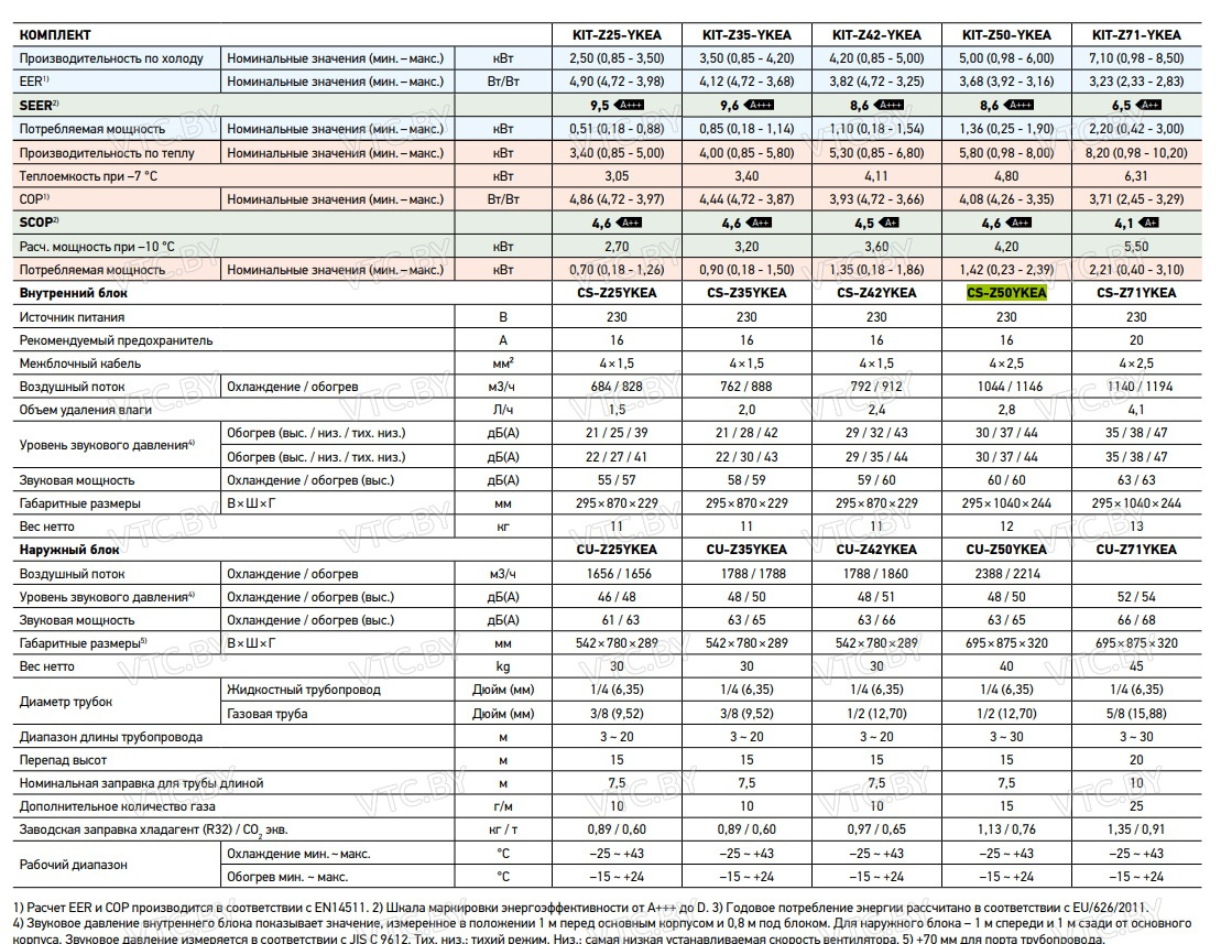 - Энергоэффективность класса A++ (SEER 6.5) снижает потребление электроэнергии при непрерывной эксплуатации.