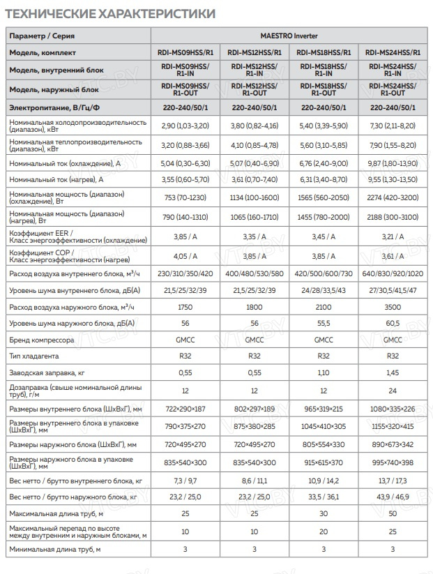 Бренд Roland Модель Maestro Inverter RDI-MS18HSS/R1 Завод изготовитель GD Midea Air Conditioning Equipment Co.,Ltd Тип кондиционера Сплит-система Тип внутреннего блока Настенный Производительность по воздуху, м³/ч 730 Инверторная технология Да Обслуживаемая площадь м2 50 Цвет внутреннего блока Белый (матовый) Хладагент R-32 Wi-Fi Опция Режим работы при обогреве -15 Мощность охлаждения, кВт 5.4 Мощность обогрева,кВт 5.6 Особенности Таймер, Угольный фильтр, HEPA фильтр, Пылевой фильтр, Стерилизация , Авторестарт после пропадания питания, iFeel (датчик температуры в пульте д/у), Антибактериальная защита, Воздушный фильтр, Регулировка направления, Регулировка скорости, Режим ЭКО ( ECO ), Режим антизамерзания, Режим обогрева, Режим разморозки, Система самодиагностики неисправности, Фильтр предварительной очистки , Фильтр с ионами серебра Гарантия(месяцев) 12 Шум внутреннего блока,дБ 24 Шум наружного блока,дБ 55.5 Ширина внутреннего блока,см 96.5 Высота внутреннего блока,см 31.9 Глубина внутреннего блока,см 21.5 Ширина наружного блока,см 80.5 Высота наружного блока,см 55.4 Глубина наружного блока,см 33 Потребляемая мощность, кВт (при обогреве) 1.455 Потребляемая мощность, кВт (при охлаждении) 1.565 Диаметр жидкостной магистрали 1/4 Диаметр газовой магистрали 1/2 Класс энергоэффективности при обогреве A Класс энергоэффективности при охлаждении A - Отзывы