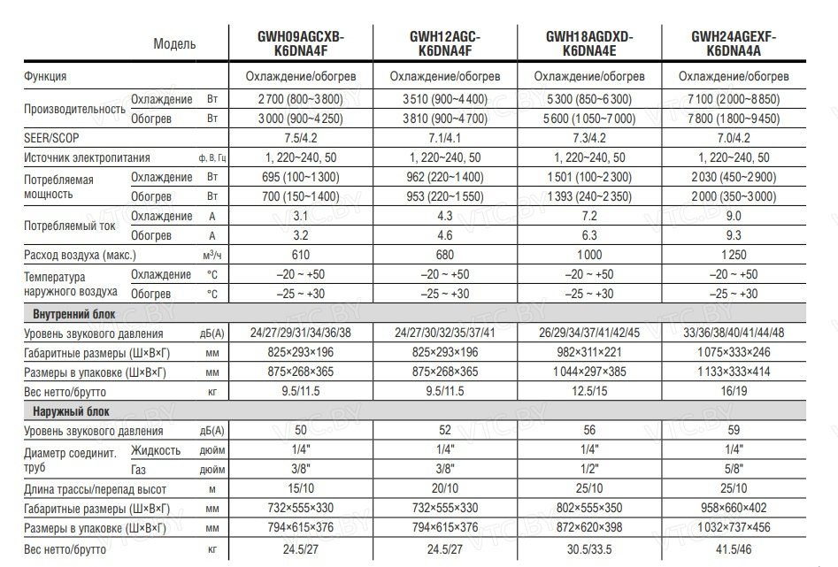 Бренд Gree Модель Pular Inverter R32 Arctic GWH18AGDXD-K6DNA4E (черный) Завод изготовитель Gree Electric Appliances Inc. of Zhuhai Тип кондиционера Сплит-система Тип внутреннего блока Настенный Производительность по воздуху, м³/ч 1000 Инверторная технология Да Обслуживаемая площадь м2 50 Цвет внутреннего блока Черный (глянцевый) Хладагент R-32 Wi-Fi Есть Режим работы при обогреве -25 Мощность охлаждения, кВт 5.3 Мощность обогрева,кВт 5.6 Особенности Таймер, Пылевой фильтр, Стерилизация , Авторестарт после пропадания питания, Воздушный фильтр, Регулировка направления, Регулировка скорости, Режим ЭКО ( ECO ), Режим антизамерзания, Режим обогрева, Режим разморозки, Система самодиагностики неисправности, Супер тихий, Фильтр предварительной очистки Гарантия(месяцев) 36 Шум внутреннего блока,дБ 45 Шум наружного блока,дБ 56 Ширина внутреннего блока,см 98.2 Высота внутреннего блока,см 31.1 Глубина внутреннего блока,см 22.1 Ширина наружного блока,см 80.2 Высота наружного блока,см 55.5 Глубина наружного блока,см 35 Интеграция в умный дом Фирменное приложение, Яндекс. Алиса Потребляемая мощность, кВт (при обогреве) 1.393 кВт Потребляемая мощность, кВт (при охлаждении) 1.501 кВт Диаметр жидкостной магистрали 1/4 Диаметр газовой магистрали 1/2 Класс энергоэффективности при обогреве A+ Класс энергоэффективности при охлаждении A++ - Отзывы