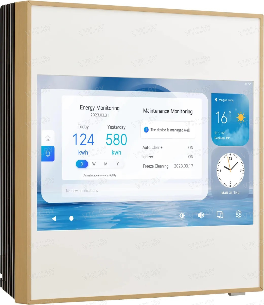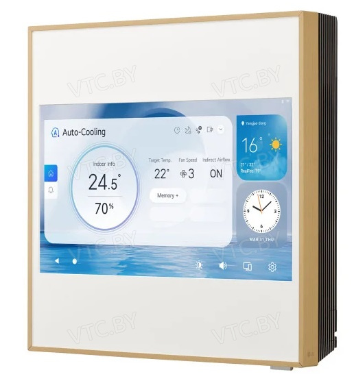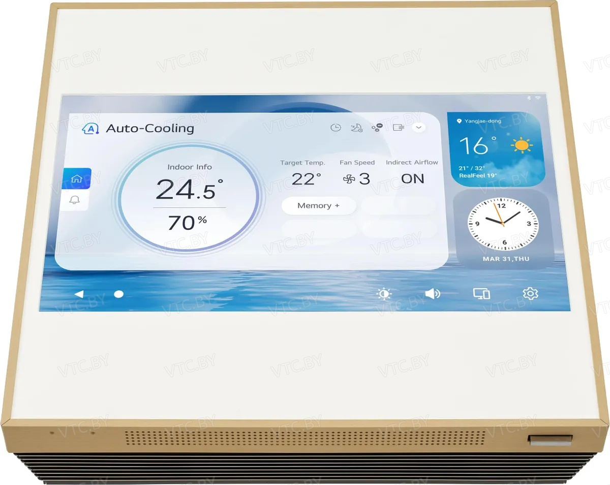 LG ARTCOOL Gallery Premium A12GA2 — уникальная дизайнерская сплит-система, сочетающая технологичность, комфорт и визуальную выразительность. Устройство оснащено LED-дисплеем диагональю 27 дюймов, сменной панелью с возможностью отображения любого изображения, а также интеллектуальным управлением через голосовые помощники и приложение LG ThinQ. Благодаря Dual Inverter компрессору кондиционер работает тихо и эффективно, а система фильтрации включает биофильтр, угольный, плазменный и фильтр с ионами серебра. Умный датчик движения регулирует поток воздуха в зависимости от присутствия человека, а режим ECO и самодиагностика обеспечивают экономичную и безопасную эксплуатацию. Уровень шума от 20 дБ делает его идеальным для спален, кабинетов и зон отдыха. ARTCOOL Gallery Premium — это не просто кондиционер, а элемент интерьера, который меняется вместе с вашим настроением.