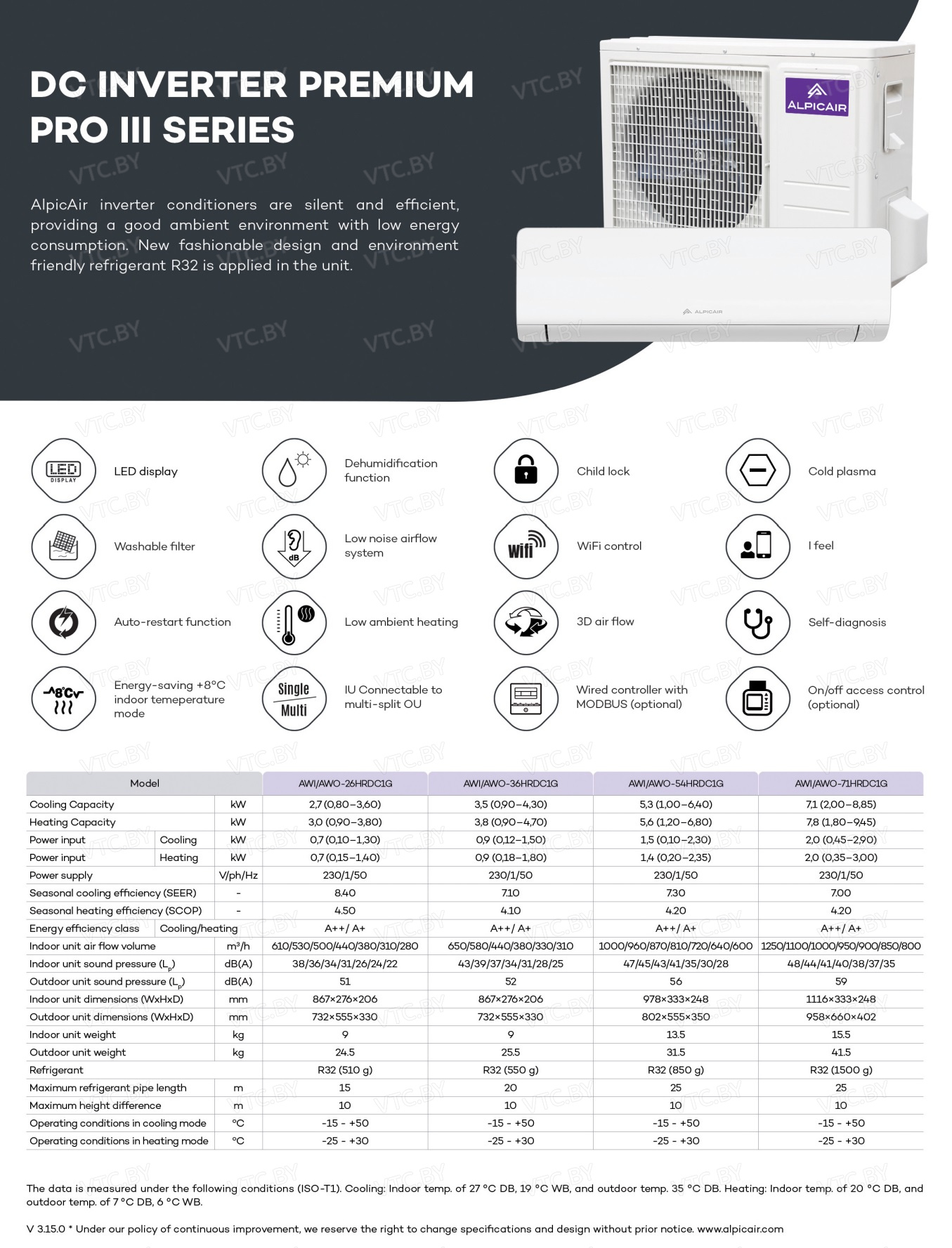 Кондиционер AlpicAir Premium PRO III AWI-71HRDC1G/AWO-71HRDC1G