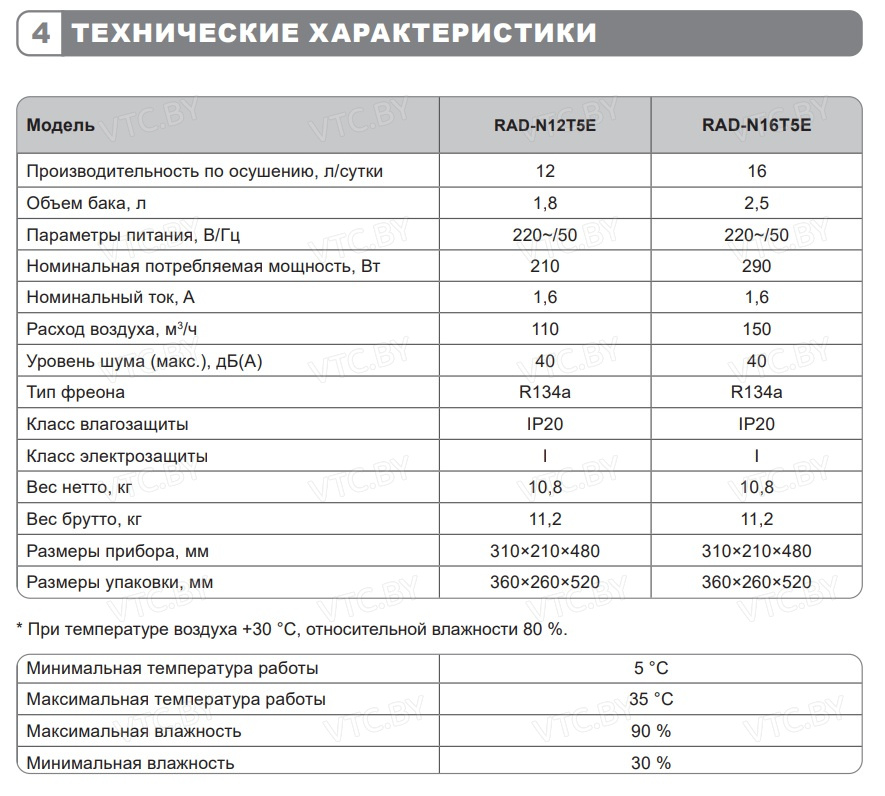 - Широкий рабочий диапазон — эффективная работа при температуре от +5°C до +35°C и влажности 30–90%.