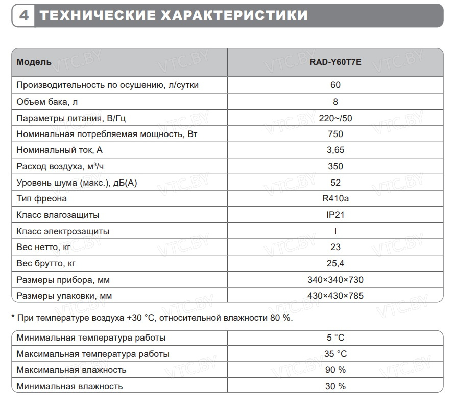 - Широкий рабочий диапазон — эффективная работа при температуре от +5°C до +35°C и влажности 30–90%.
