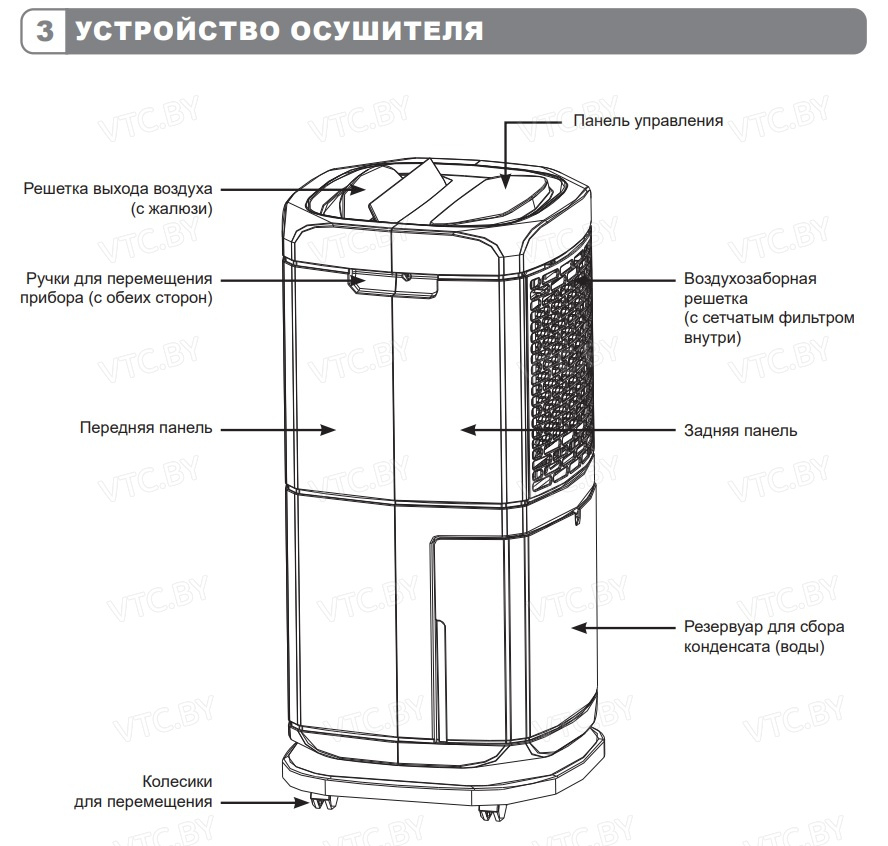 - Высокая производительность 60 л/сут — быстрое и эффективное осушение больших помещений.