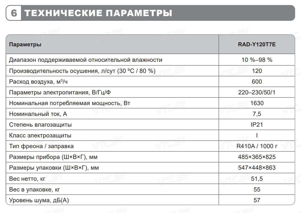 - Производительность 120 л/сут – максимально высокая мощность осушения для профессионального применения.