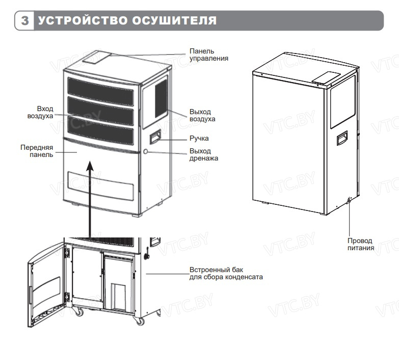 - Возможность непрерывного дренажа – для отвода воды через дренажную трубку (шланг в комплекте).