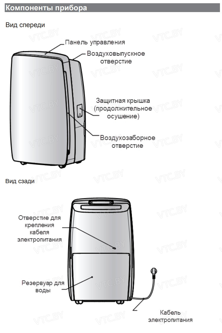 - Два способа отвода конденсата — съемный резервуар и возможность подключения дренажного шланга.