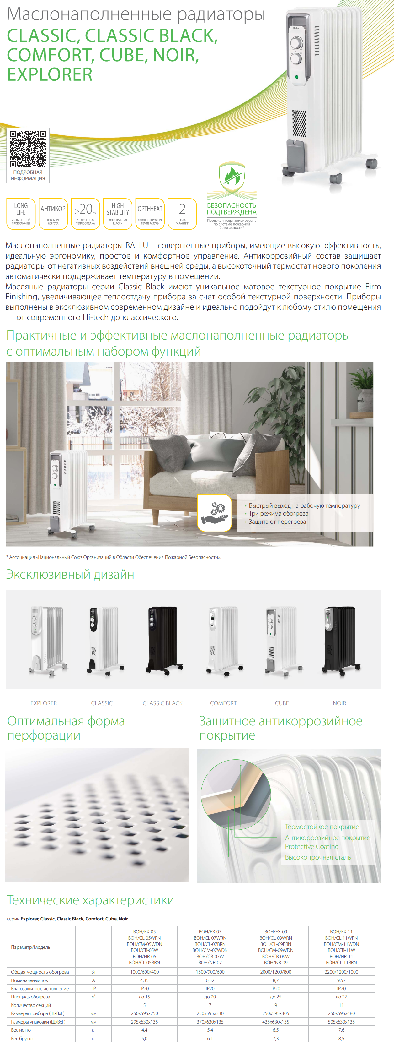 - Антикоррозийное покрытие «Protective Coating» надежно защищает корпус от внешних воздействий, значительно продлевая срок службы обогревателя.