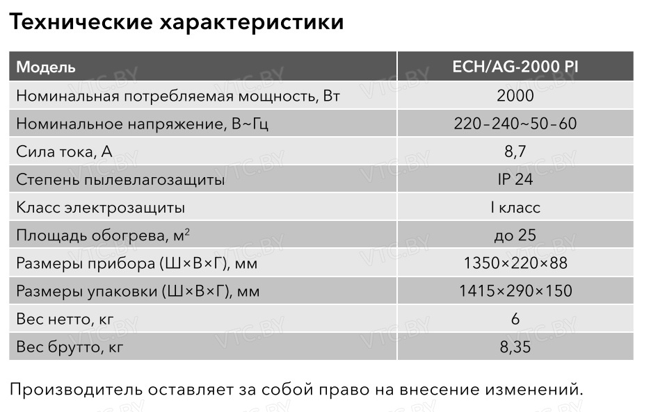 - Влагозащищенный корпус позволяет безопасно использовать конвектор в помещениях с повышенной влажностью.