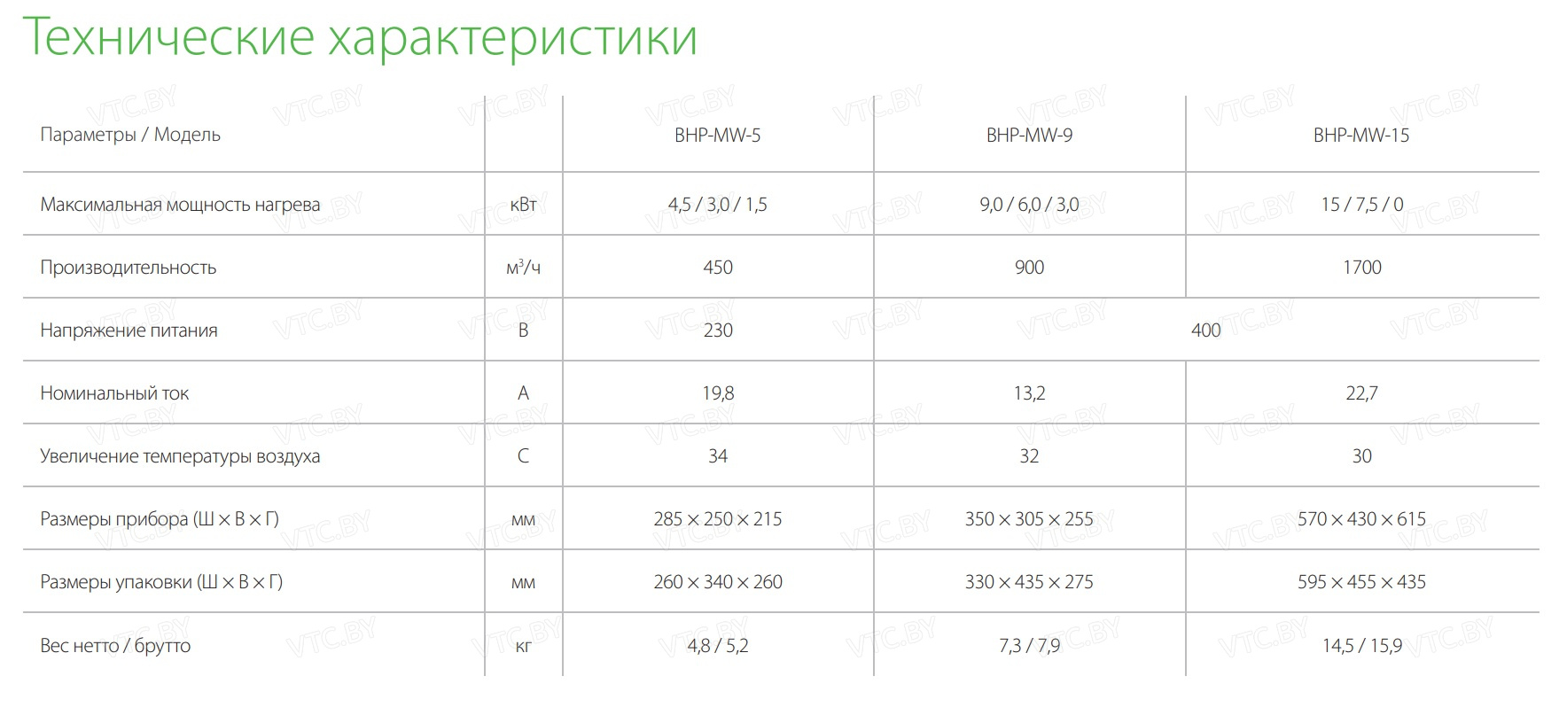 Бренд Ballu Модель BHP-MW-15 Тип Тепловентилятор Нагрев прямой Мощность кВт 15 Производительность по воздуху, м³/ч 1700 Производительность,м³/час 1700 Регулировка уровня мощности, кВт 7.5, 15.00 Обслуживаемая площадь м2 150 Вид установки (крепления) Настенный Управление Электронное Особенности Защита от перегрева, Регулировка направления, Регулировка уровня мощности, Режим обогрева, Электронный термостат Напряжение 380 В Гарантия(месяцев) 36 Высота см. 36.5 Ширина см. 40 Глубина см. 29 Тип нагревательного элемента ТЭН Цвет Серый - Отзывы