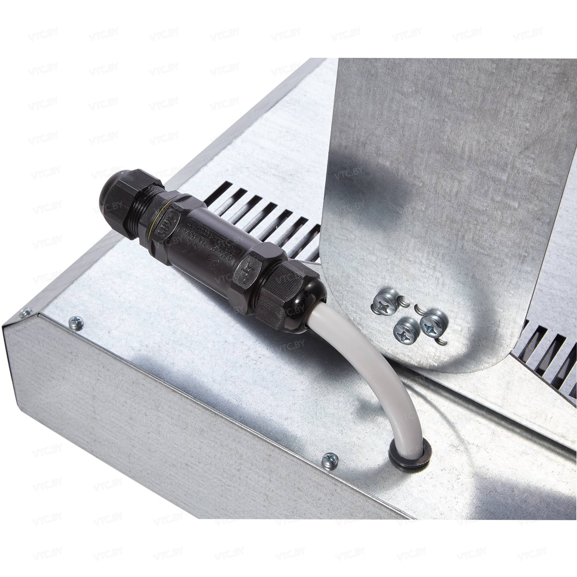 - Герметичный кабельный ввод обеспечивает безопасное и надежное подключение силового кабеля.