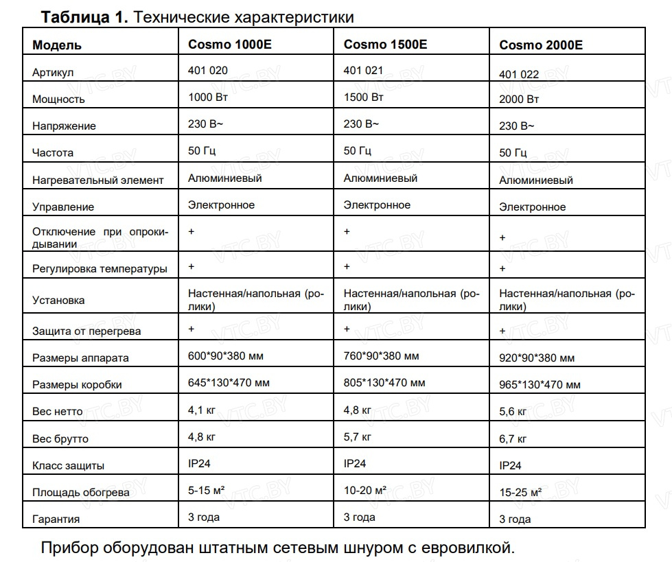 Бренд Thermex Модель Cosmo 1000E Тип Конвектор Мощность кВт 1 Регулировка уровня мощности, кВт 0.5, 1.0 Обслуживаемая площадь м2 15 Вид установки (крепления) Напольный, Настенный Управление Электронное Особенности Влагозащитный корпус, Защита от перегрева, Регулировка уровня мощности, Электронный термостат Напряжение 220 В Гарантия(месяцев) 12 Высота см. 60 Ширина см. 38 Глубина см. 9 Тип нагревательного элемента ТЭН Цвет Белый - Отзывы