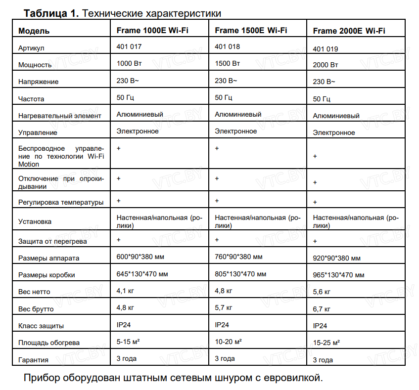 - Регулировка уровня мощности (например, 500/1000 Вт для модели 1000E) дает гибкость в выборе интенсивности обогрева и снижает энергопотребление.