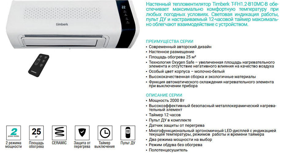 Тепловентилятор Timberk T-FH1.2-B10MC-B