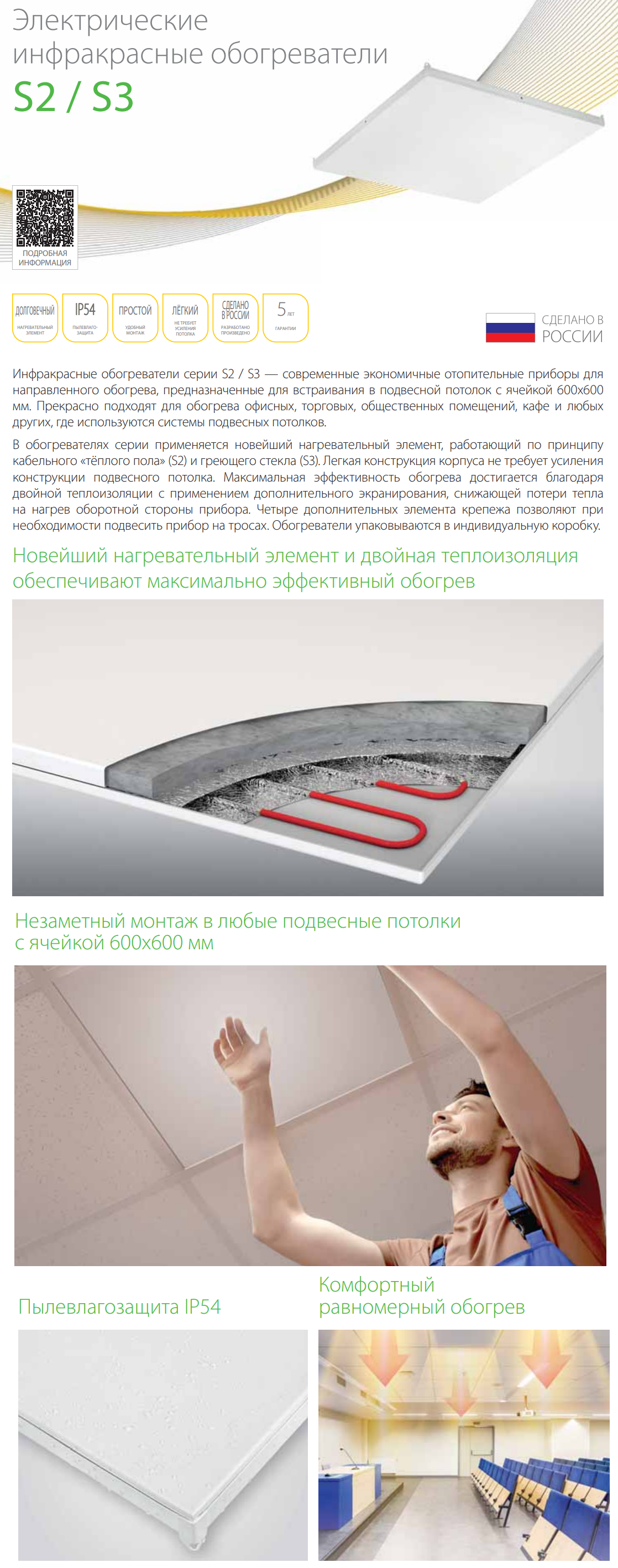 Ballu BIH-S3-0.6 — это современный инфракрасный обогреватель потолочного типа, предназначенный для встраивания в подвесные потолки с ячейкой 600×600 мм. Модель оснащена инновационным нагревательным элементом в виде греющего стекла, которое испускает длинноволновое инфракрасное излучение для прямого обогрева поверхностей. Благодаря высокой степени защиты IP54 прибор можно безопасно использовать даже во влажных помещениях. Двойная термоизоляция и легкая конструкция обеспечивают эффективную и безопасную работу без необходимости усиления потолка. Обогреватель работает абсолютно бесшумно и не сушит воздух, создавая комфортный микроклимат. Возможность подключения внешнего терморегулятора позволяет точно поддерживать заданную температуру в помещении.