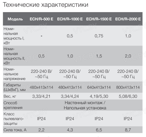 - Энергоэффективная двухступенчатая мощность (0.5/1.0 кВт) позволяет экономить электроэнергию при умеренном обогреве и использовать полную мощность для быстрого прогрева.