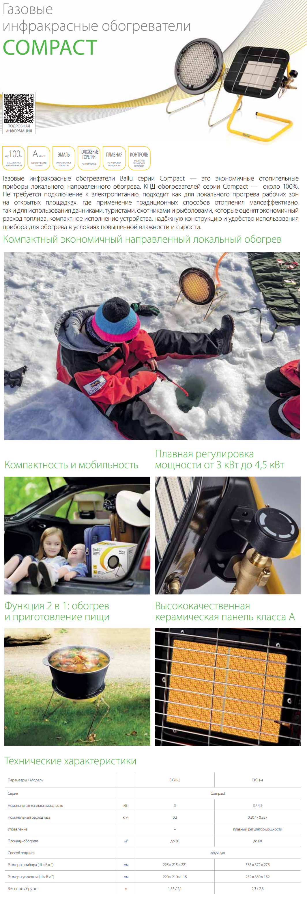 Газовый инфракрасный обогреватель Ballu Universal BIGH-3 — это универсальный прибор «2-в-1», сочетающий функции эффективного обогрева и компактной походной плиты. Он обеспечивает мгновенный направленный нагрев, работая с абсолютным КПД 100% и не требуя подключения к электросети. Модель отличается исключительной мобильностью и компактностью, легко помещаясь в багажнике автомобиля. Высококачественная керамическая горелка гарантирует долговечность и равномерное распределение тепла. Благодаря прочным съемным ножкам прибор устойчиво размещается на любой поверхности, а его надежная конструкция рассчитана на интенсивную эксплуатацию. Это идеальный спутник для активного отдыха, работы и решения бытовых задач в условиях автономии.