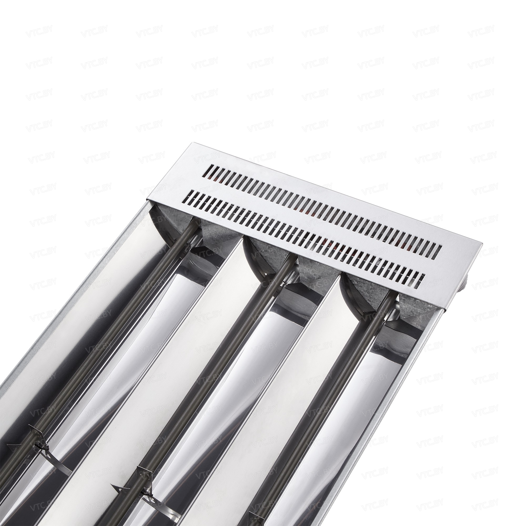 - Отражатель из жаростойкой зеркальной нержавеющей стали сохраняет отражающую способность на протяжении всего срока службы.