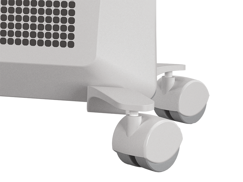 - Напольная установка на ножках с роликами обеспечивает легкое и мобильное перемещение обогревателя по всему дому.