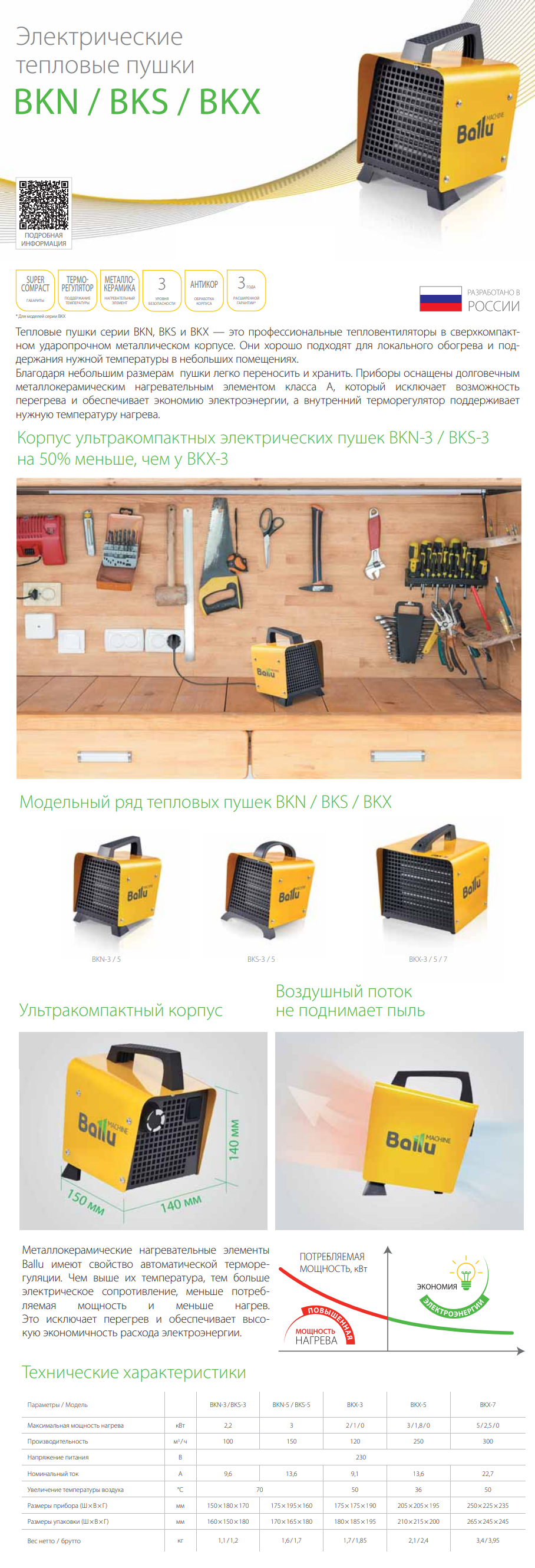 Тепловая пушка Ballu BKN-3 создана для эффективного обогрева помещений площадью до 25 м². Она станет идеальным персональным обогревателем для рабочего места в офисе, кабинете или на складе. Благодаря минимальным размерам, она легко поместится под стол или в тесную будку охраны. Прибор отлично справится с задачей быстрого прогрева дачного домика, гаража или мастерской в межсезонье. Он незаменим для локальной просушки штукатурки, краски или строительных смесей на небольшом участке ремонта. Свою пользу пушка найдет и в быту: для создания комфортной температуры в ванной комнате, на балконе или в детской игровой зоне. Это универсальный, экономичный и очень компактный инструмент для решения множества задач по обогреву в быту, на работе и в хобби.