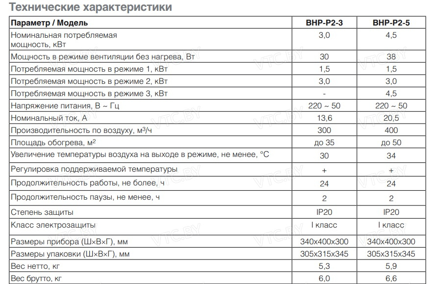 Бренд Ballu Модель Prorab-2 BHP-P2-3 Тип Электрическая Нагрев прямой Мощность кВт 3.0 Производительность по воздуху, м³/ч 300 Производительность,м³/час 300 Регулировка уровня мощности, кВт 1.5, 3.0 Особенности Защита от перегрева, Механический термостат, Регулировка уровня мощности Напряжение 220 В Гарантия(месяцев) 36 Высота см. 40 Ширина см. 34 Глубина см. 30 -