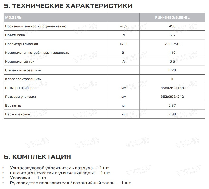 Бренд Royal Clima Модель Genova RUH-G450/5.5E-BL Метод увлажнения Ультразвуковой Производительность по увлажнению,мл/ч 450 Объем резервуара,л 5.5 Обслуживаемая площадь м2 40 Гигрометр Да Гигростат Да Управление Электронное Уровень шума,дБ 35 Потребляемая мощность, кВт 0.11 Особенности Таймер, Ионизация, Ароматизация, Защита от известкового налета, Подогрев воды, Водяной фильтр, Индикатор наполнения, Регулировка скорости Гарантия(месяцев) 12 Высота см. 35.6 Ширина см. 26.2 Глубина см. 18.8 -