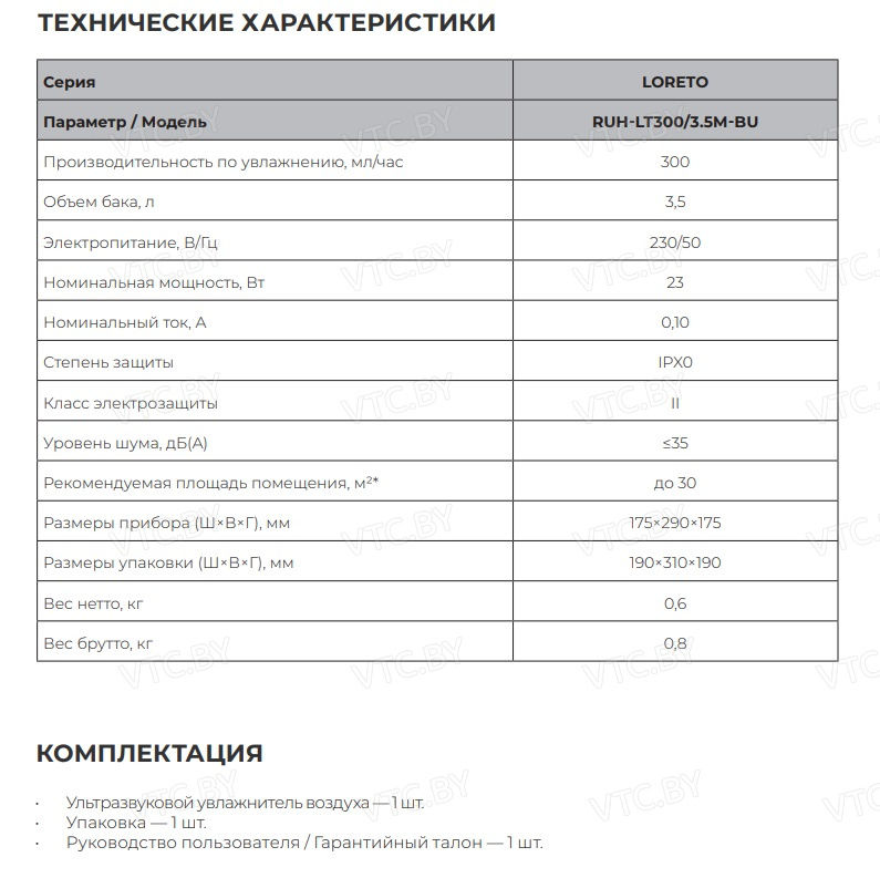 Бренд Royal Clima Модель Loreto RUH-LT300/3.5M-BU Метод увлажнения Ультразвуковой Верхний залив Да Производительность по увлажнению,мл/ч 300 Объем резервуара,л 3.5 Обслуживаемая площадь м2 30 Управление Механическое Уровень шума,дБ 35 Потребляемая мощность, кВт 0.023 Особенности Индикатор наполнения, Регулировка скорости, Регулировка уровня мощности Гарантия(месяцев) 12 Высота см. 29 Ширина см. 17.5 Глубина см. 17.5 - Отзывы