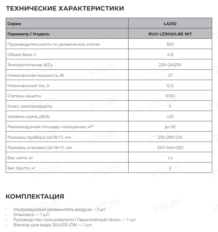 - Объемный резервуар 4,8 л: Обеспечивает продолжительную работу без необходимости частого долива воды.