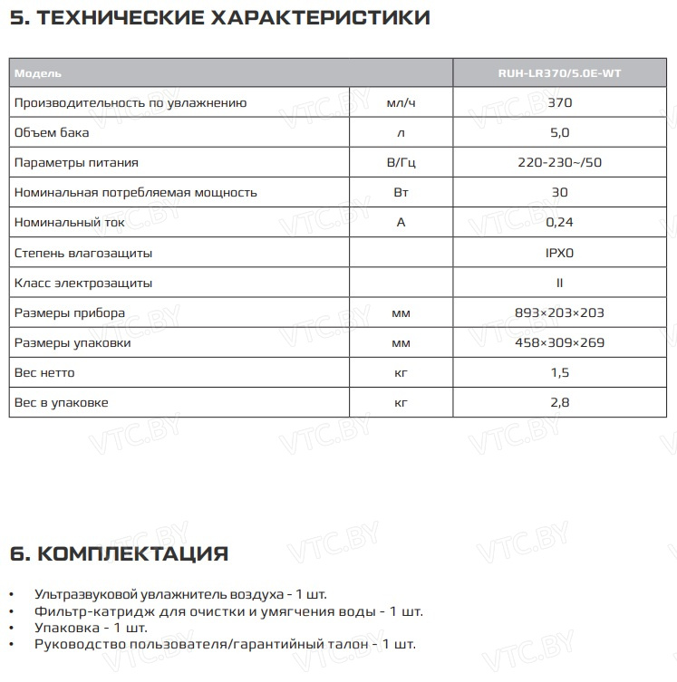 - Высокая производительность (370 мл/ч) — обеспечивает быстрое увлажнение больших помещений.