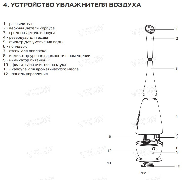 - Встроенный гигростат — автоматически поддерживает заданный уровень влажности.