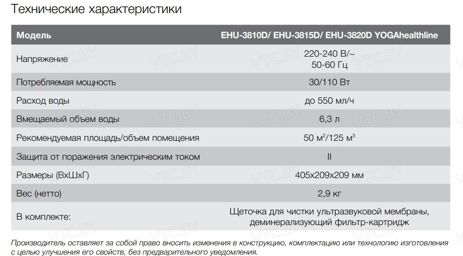 Бренд Electrolux Модель EHU-3810D Метод увлажнения Ультразвуковой Верхний залив Да Производительность по увлажнению,мл/ч 500 Объем резервуара,л 6.3 Обслуживаемая площадь м2 50 Гигрометр Да Гигростат Да Управление Электронное Уровень шума,дБ 37 Потребляемая мощность, кВт 0.11 Особенности Таймер, Ионизация, Ароматизация, Защита от известкового налета, Подогрев воды, Стерилизация , Ультрафиолетовая лампа , Антибактериальная защита, Водяной фильтр, Индикатор наполнения, Программируемый гигростат, Регулировка скорости, Регулировка уровня мощности Гарантия(месяцев) 24 Высота см. 40.5 Ширина см. 20.9 Глубина см. 20.9 -