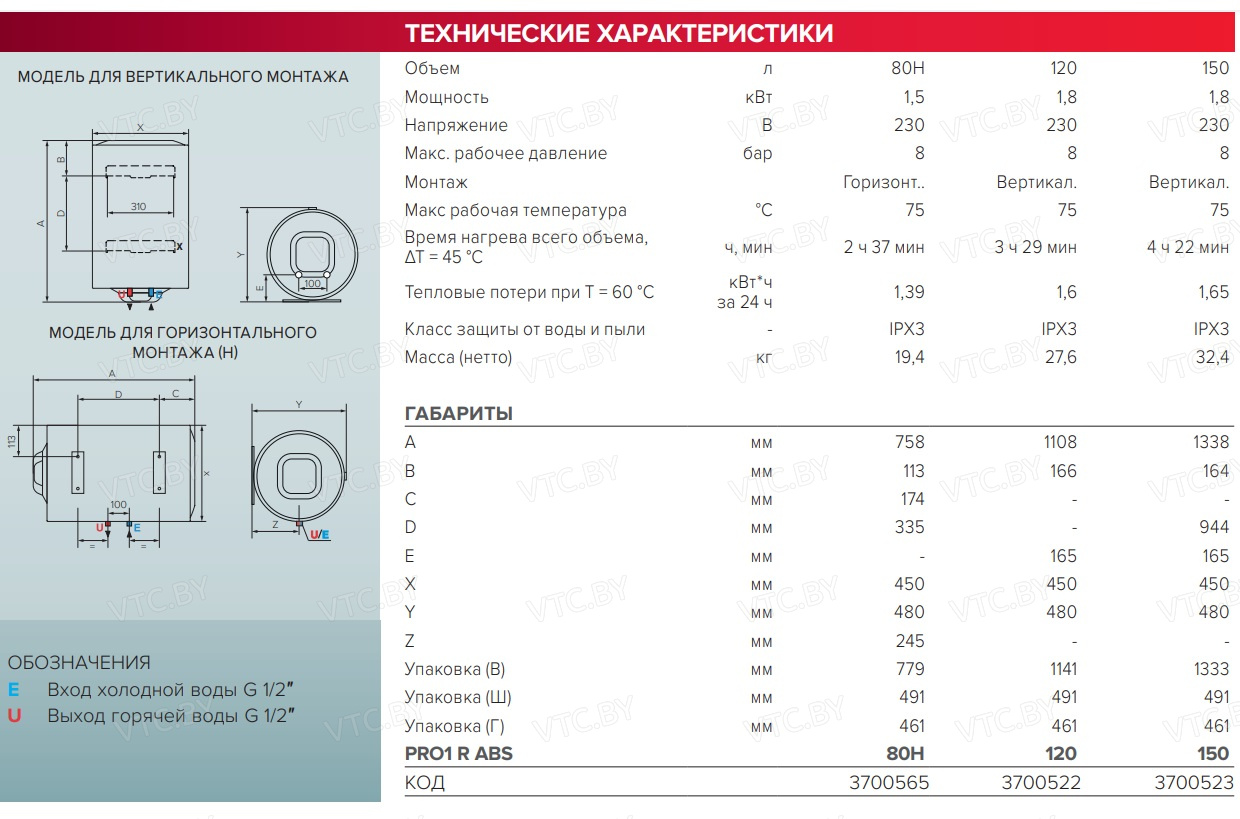 Инструкция Ariston PRO1 R ABS 150 V Размер: 7,7 мбЧертеж Ariston PRO1 R ABS 150 V Размер: 1,1 мб -