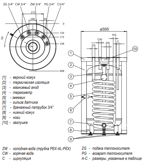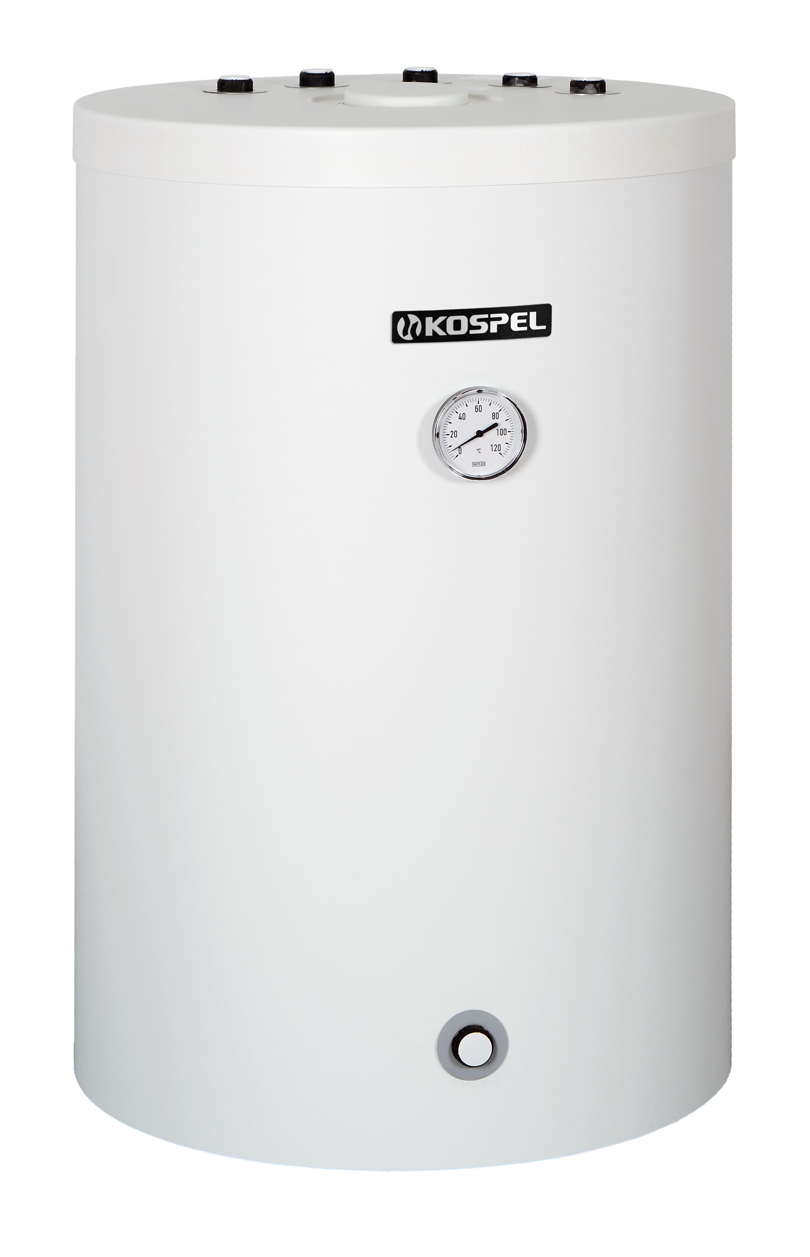 Вертикальный бойлер для нагрева и хранения воды Kospel SWK-140.A TERMO TOP WHITE со спиральной конструкцией змеевика, а также верхним расположением патрубков для монтажа под настенным отопительным котлом. Теплообменники данной модели идеально подходят для нагрева воды при взаимодействии с отопительным котлом.