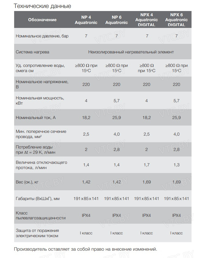 Бренд Electrolux Модель NP4 Aquatronic 2.0 Тип Проточный системный Способ нагрева электрический Мощность кВт 4.0 Производительность (л/мин) 2.2 Управление Механическое Подводка труб Нижняя Расположение вертикальный Способ крепления настенный Особенности Защита от известкового налета, Влагозащитный корпус, Защита от перегрева Напряжение 220 В Гарантия(месяцев) 24 Высота см. 14.1 Ширина см. 19.1 Глубина см. 8.5 - Отзывы
