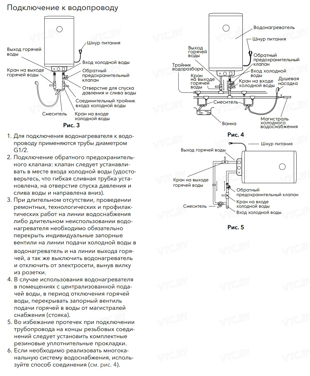 - Предохранительный клапан: Защищает бак от избыточного давления до 7.5 Бар.