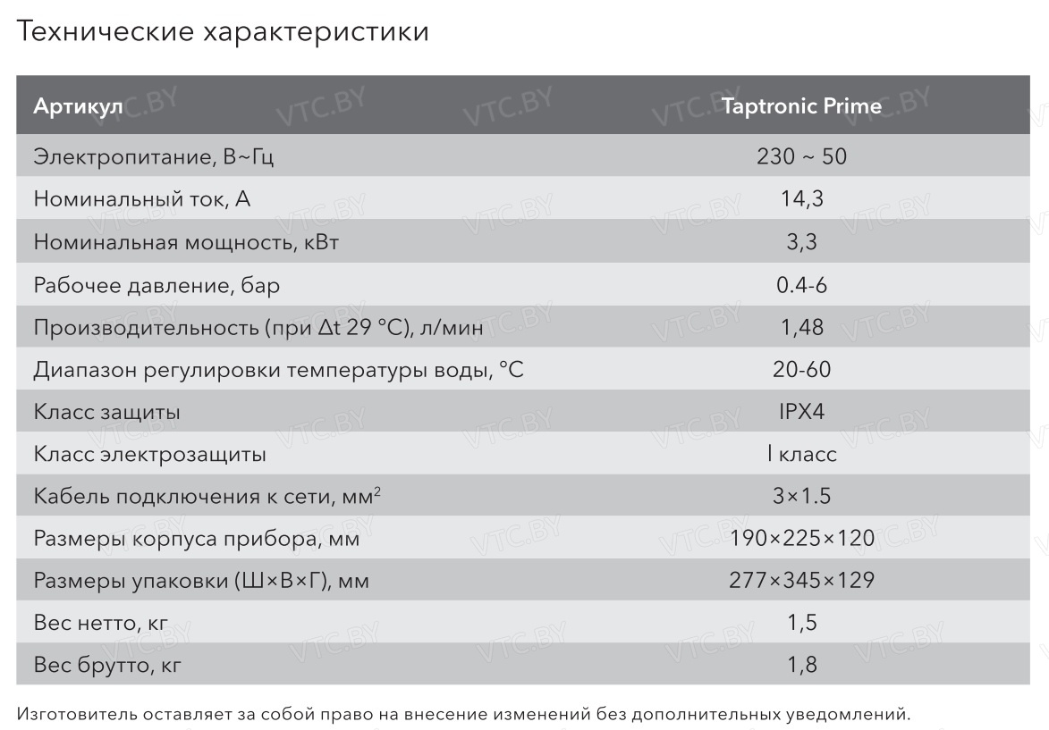 - Мощность 3.3 кВт: Эффективный нагрев для одной точки водоразбора.