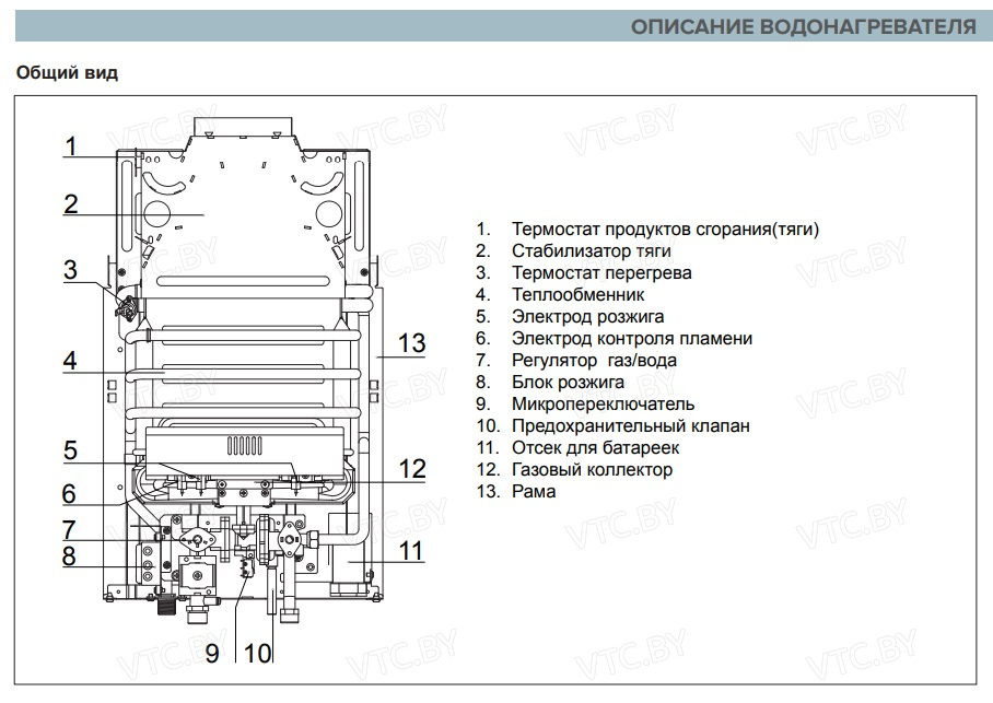 - Термостат перегрева — автоматически отключает горелку при критическом росте температуры воды, защищая от ожогов и поломок.