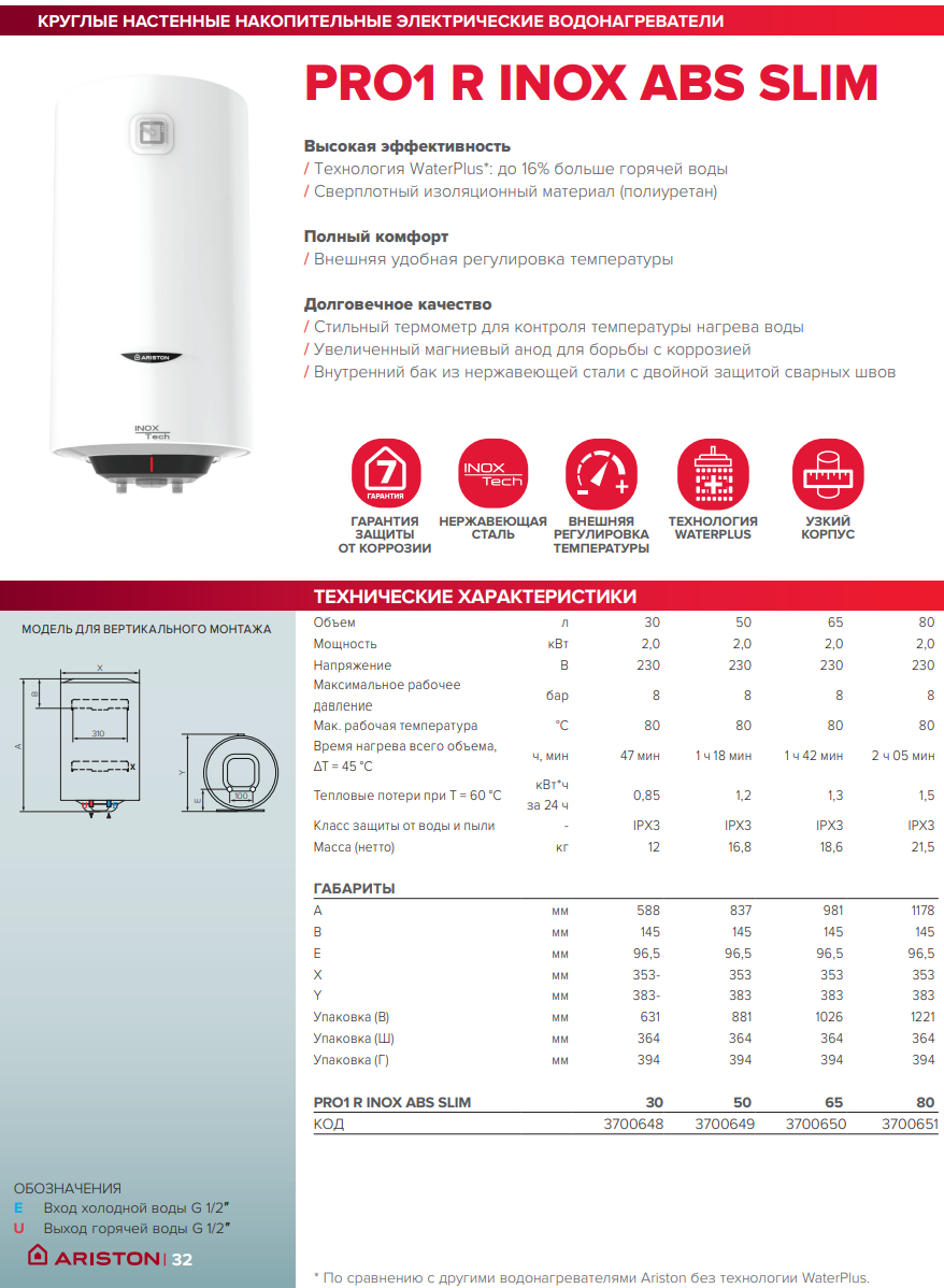 Инструкция Ariston PRO1 R INOX ABS 65 V Slim 2K Размер: 7,7 мбЧертеж Ariston PRO1 R INOX ABS 65 V Slim 2K Размер: 345,9 кб -
