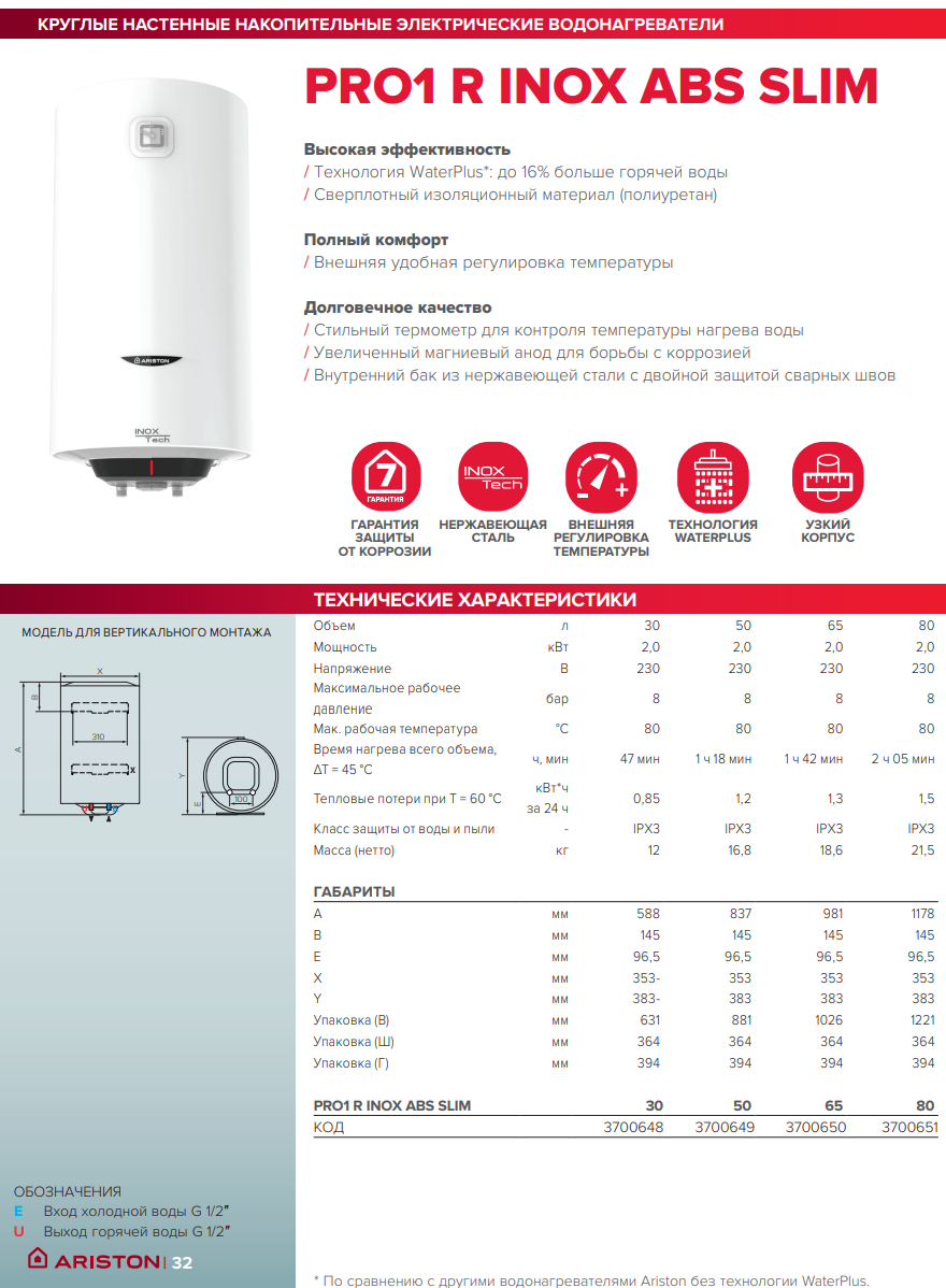 Инструкция Ariston PRO1 R INOX ABS 80 V Slim 2K Размер: 7,7 мбЧертеж Ariston PRO1 R INOX ABS 80 V Slim 2K Размер: 345,9 кб -