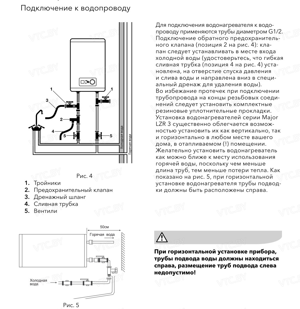 - Защита от давления: Предохранительный клапан до 6 бар.