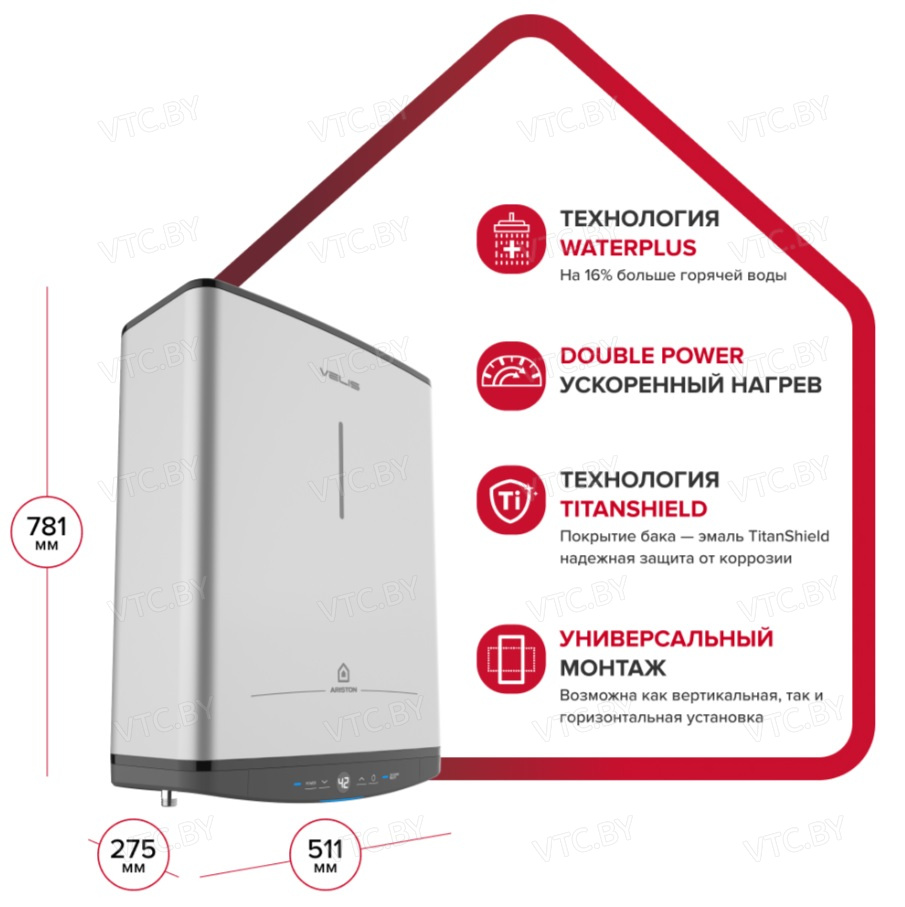 - Технология WaterPlus — увеличивает выход горячей воды на 16% за счет оптимизации конструкции нагрева.