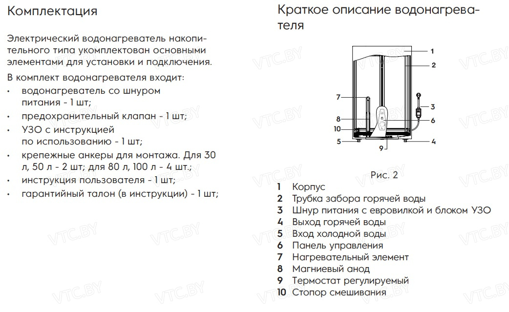 - Магниевый анод: Обеспечивает дополнительную защиту бака от коррозии.
