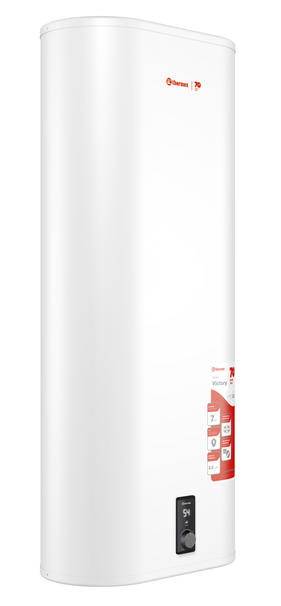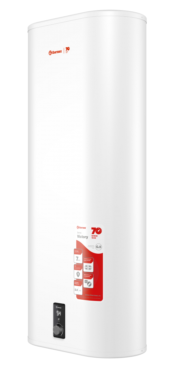 Накопительный электрический водонагреватель Thermex Victory 100 V - ограниченная серия водонагревателей, выпущенная в честь семидесятилетия корпорации. Особенностью новой серии стали все проверенные технологии качества и достижения компании - внутренние баки, изготовленные по технологии G.5, конструкция Double Tank для достижения плоского корпуса, надежный ТЭН TitaniumHeat и простое механическое управление с ярким дисплеем. Водонагреватели данной серии отличаются высокой прочностью, надежностью и долговечностью. Они входят в категорию плоских водонагревателей, что делает ее более привлекательной и помогает экономить полезное пространство. Удобный регулятор, яркий дисплей, тонкий корпус и белоснежное покрытие корпуса делают эту серию отличным решением для горячего водоснабжения.