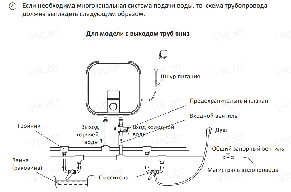 - Нижняя подводка труб — стандартное подключение.