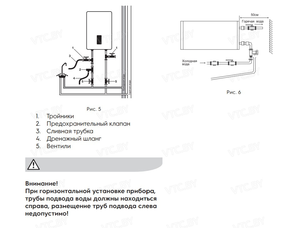 - Защита от превышения давления: Предохранительный клапан до 6 бар.
